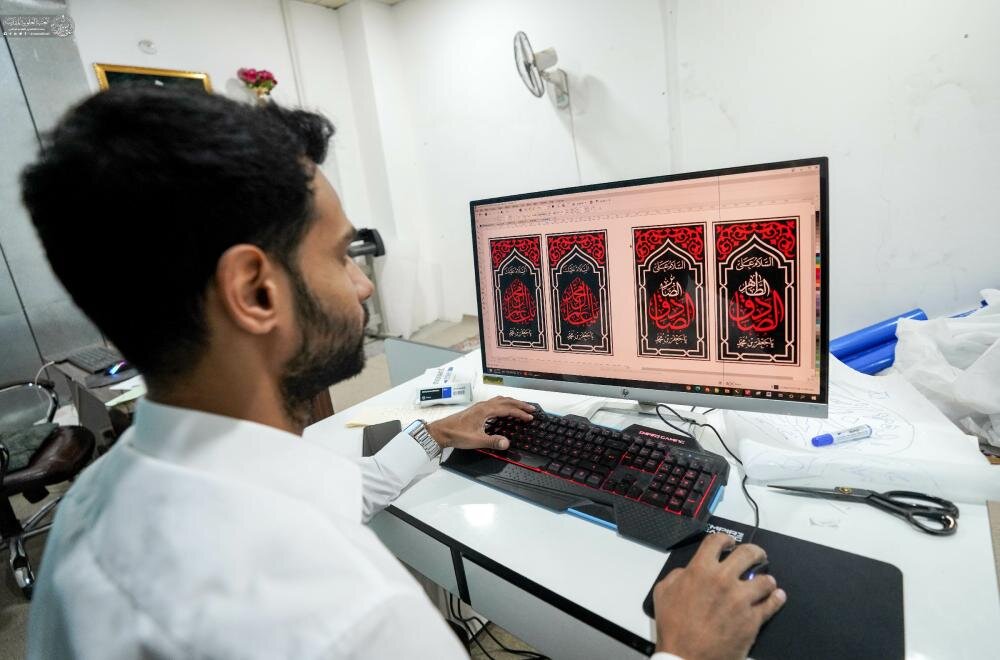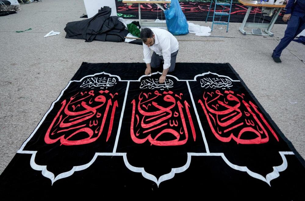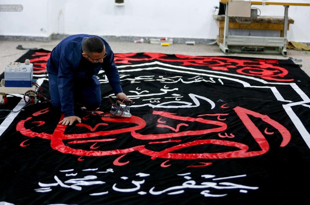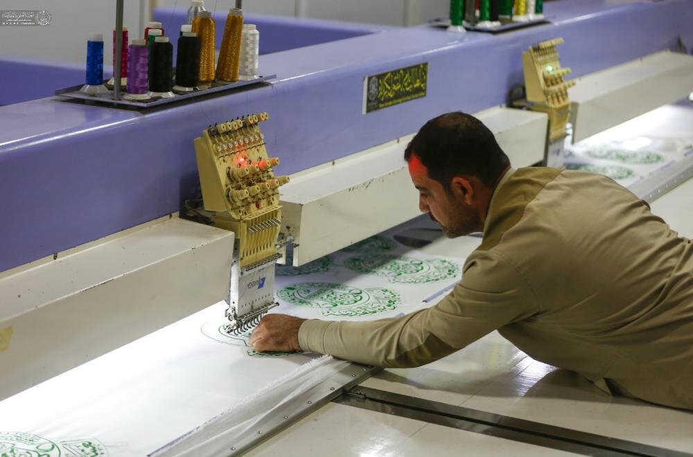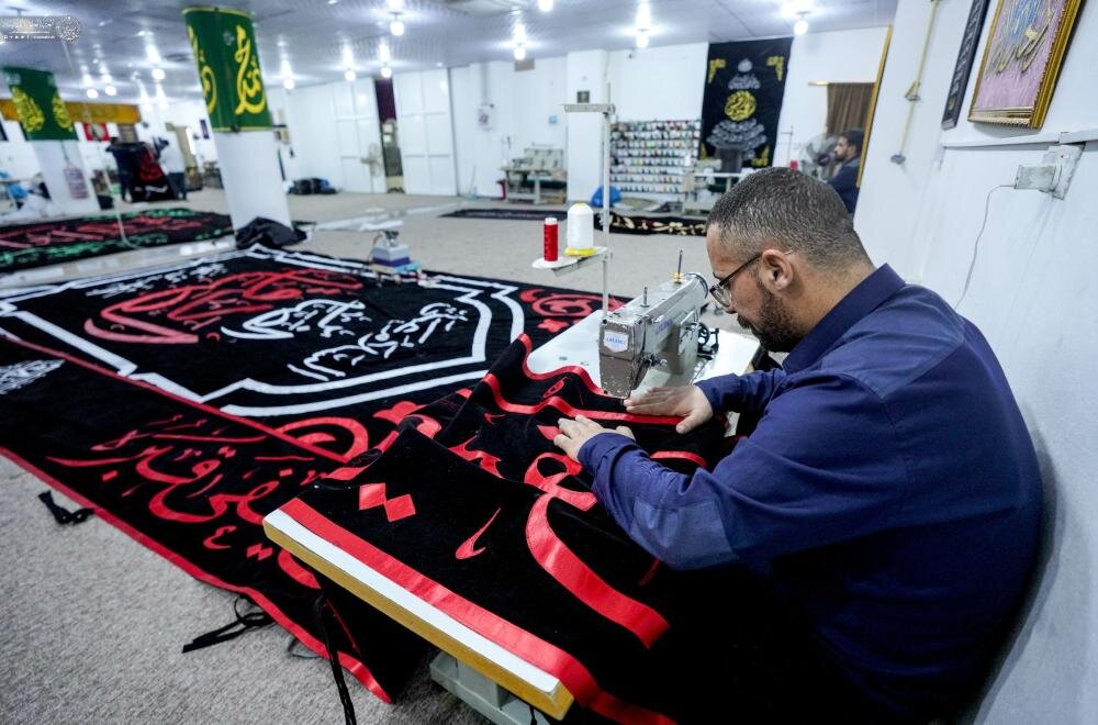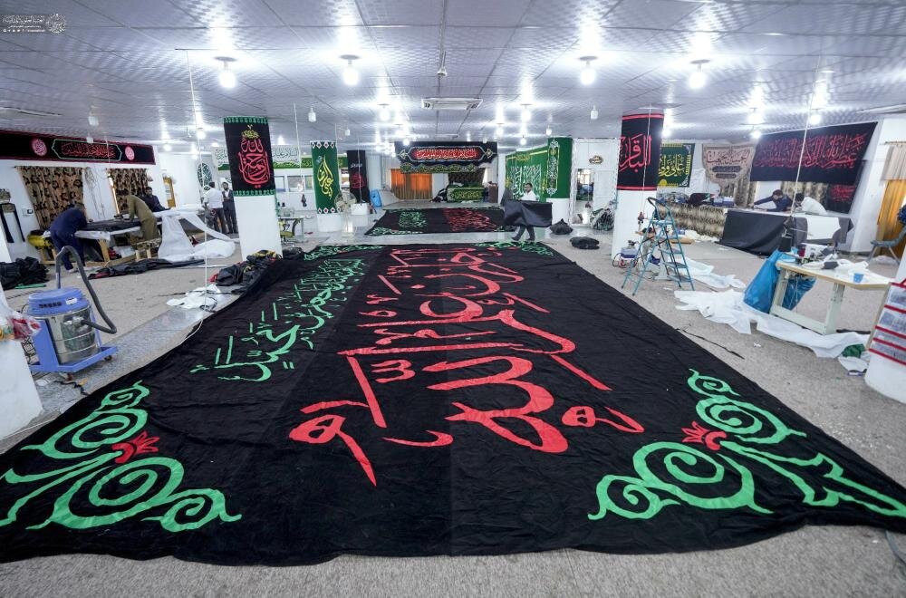 وقال مسؤول ورشة التطريز الخادم حيدر عبد الله في تصريح له :” العمل تضمَّن خياطة الراية الرئيسية إضافة إلى لافتات كبيرة عدد ( 5 و 4) بحجم متوسط وكذلك عمل لافتات خاصة بالأواوين والكيشوانية والمظلَّات “.