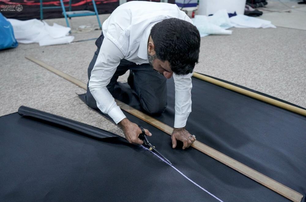 العتبة العلوية المقدسة تُكمل خياطة لافتات الحزن والحداد + الصور