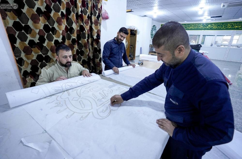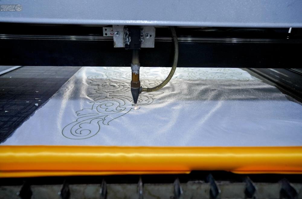 وأوضح عبد الله :” يتم العمل بعدة مراحل ابتداءً من التصميم ومن ثم تقطيع القماش وبعد ذلك الخياطة والتطريز؛ لتكون القطع جاهزة للتعليق في الأماكن المُخصَّصة لها, إذ تمَّ تحضير ما يقارب 500 متر لهذه المناسبة بعد اختيار العبارات من قبل قسم الشؤون الدينية , ومن الناحية الفنية يتم عادةً استخدام خط النسخ أو الثلث؛ لسهولة قراءته من قِبل الزائرين الوافدين إلى مرقد أمير المؤمنين (عليه السلام).