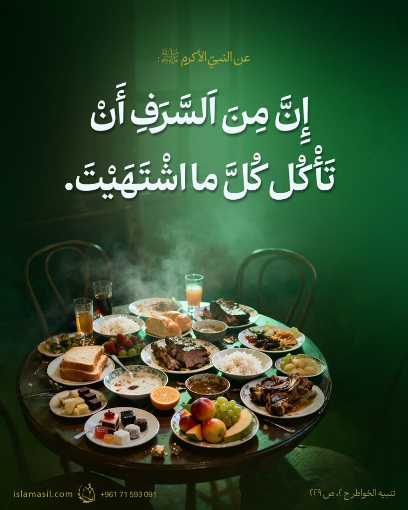 إنَّ مِنَ السَّرَفِ أن تَأكُلَ كُلَّ ما اشتَهَيتَ.