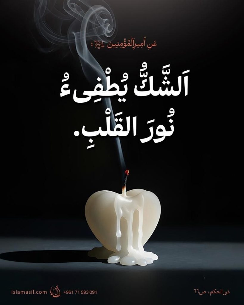 الشَّكُّ يُطْفِئُ نُورَ القَلْبِ.