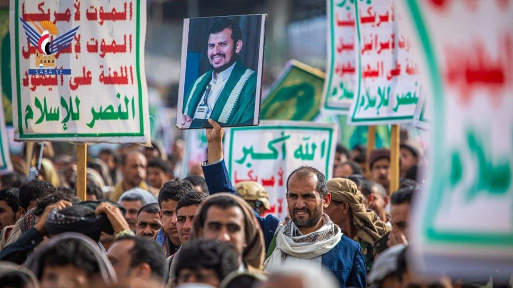 وفقا لما أفادته وكالة أنباء أهل البيت (ع) الدولية ــ شهدت العاصمة صنعاء أمس الجمعة، مسيرة جماهيرية مليونية، تحت شعار “تلبيةً ونصرةً للشعب الفلسطيني.. ثابتون وجاهزون للجولة القادمة”. حيث توافدت الحشود البشرية من كل حدب وصوب إلى ميدان السبعين استجابة لدعوة قائد الثورة السيد عبدالملك بدر الدين الحوثي، إسنادا ونصرة للشعب الفلسطيني ومجاهديه، رافعة شعار البراءة من أعداء الله، وشعارات الحرية والعزة والكرامة والجهاد.