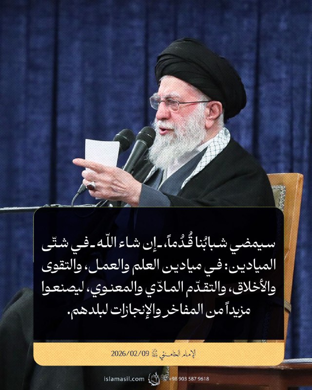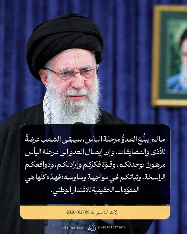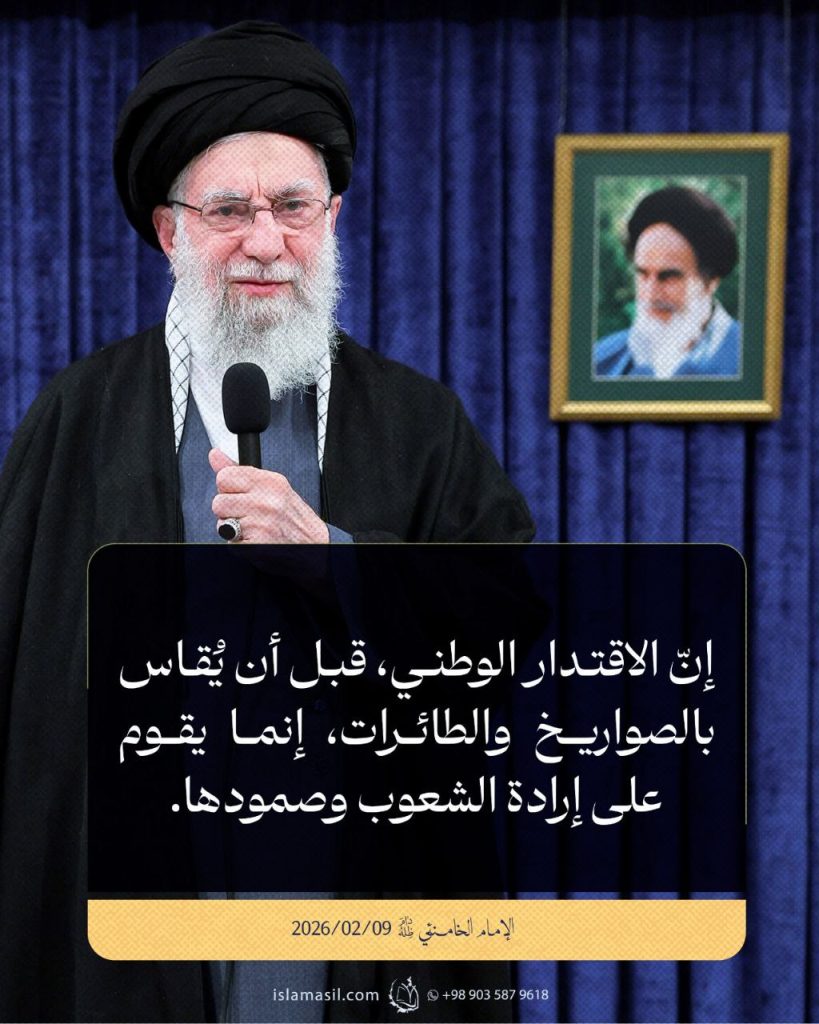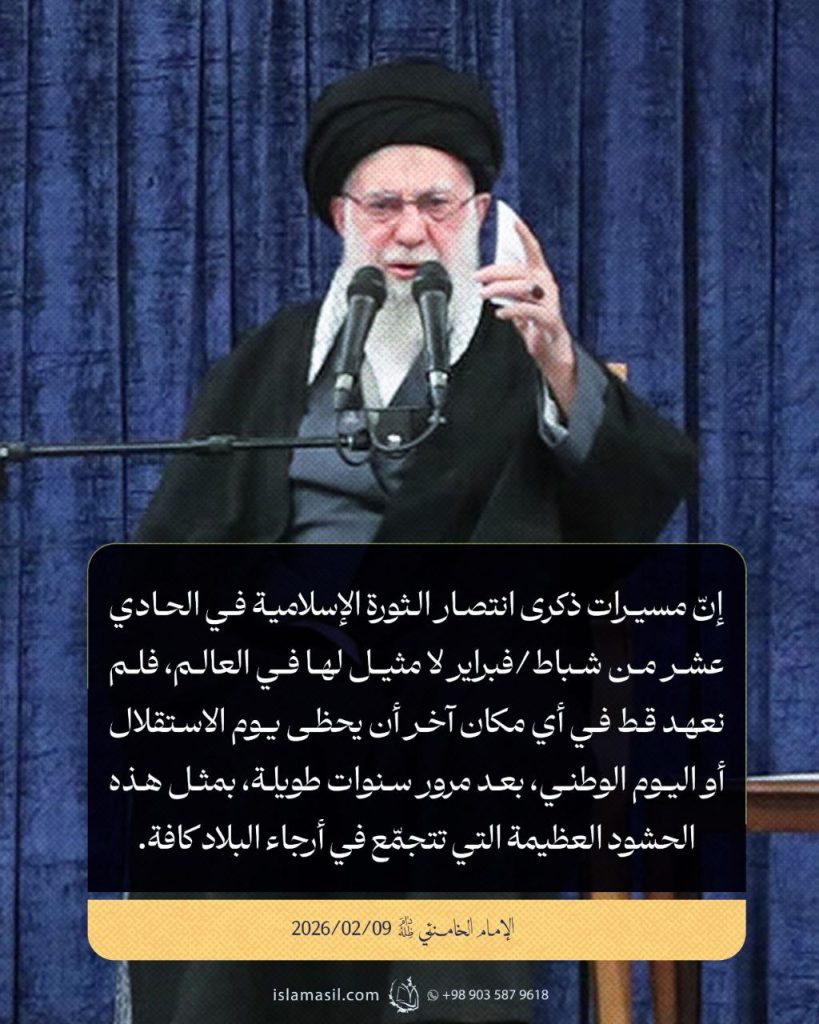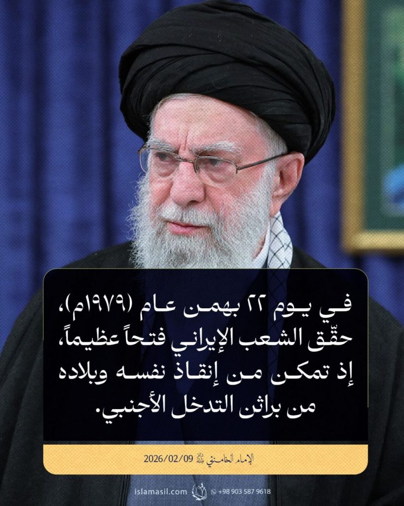 مقتطفات من رسالة الإمام الخامنئي المتلفزة إلى الشعب الإيراني بمناسبة ذكرى انتصار الثورة الإسلامية: 09/02/2026