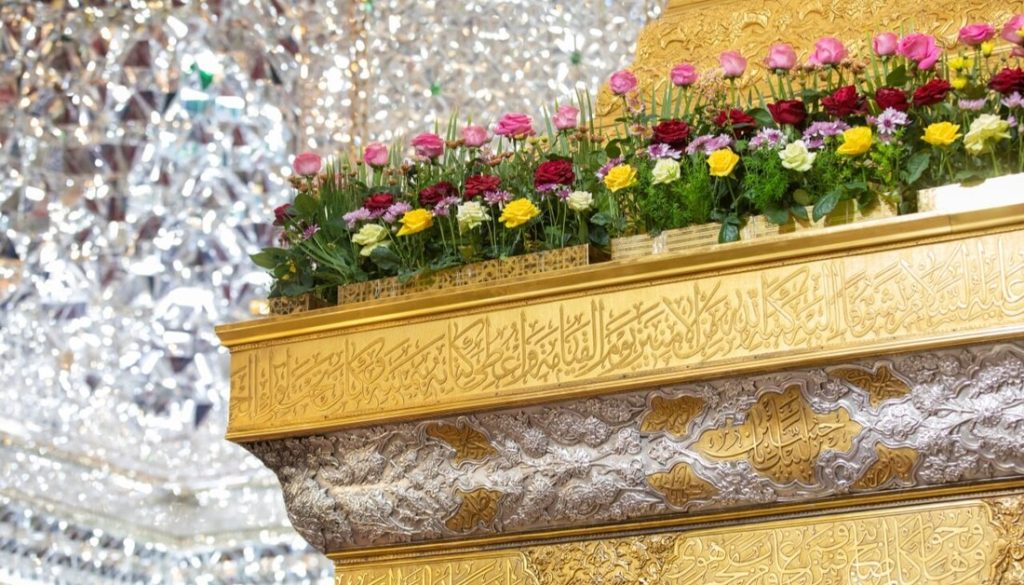 بالصور: أكاليل الورد تزين ضريح الإمام الحسين (ع) احتفاء بولادة الإمام علي الرضا (ع)