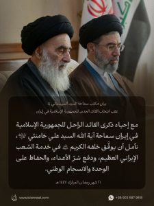 عبّر مكتب آية الله العظمى السيستاني في النجف الأشرف عن أمله العظيم في أن يكلّل الله مسيرة سماحة آية الله السيد مجتبى الخامنئي بالتوفيق والتأييد
